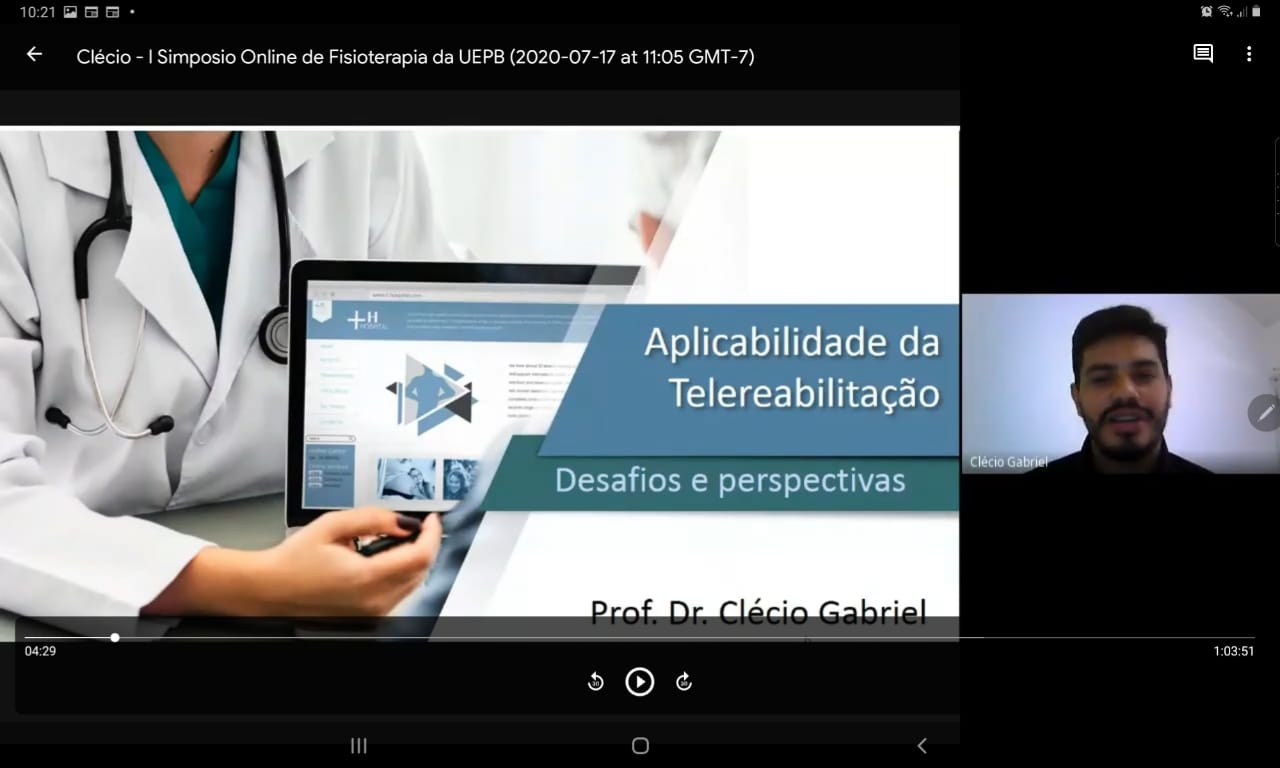“A essa assistência remota deu-se o nome de telereabilitação. A partir de então, os profissionais estão buscando estratégias para usar essa ferramenta da melhor forma, observou. Ele enfatizou que, para que essa ferramenta funcione, é necessário uma série de pré-requisitos, como acesso à internet e conhecimento mínimo sobre manuseio de tecnologias, além de se ter um local adequado para se fazer os exercícios. Como desafios, Cléssio Gabriel enfatizou que nem todos os profissionais aderiram a essa ferramenta, visto que ainda não existe uma deliberação do Conselho de Fisioterapia que determine qual deva ser a melhor forma de assistência.