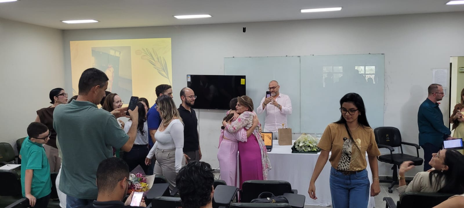 A homenagem contou com a participação de docentes e discentes de Odontologia, de docentes aposentados(as) do curso, de professores(as) de outros cursos do CCBS, além de familiares e amigos da homenageada. Servidores(as) organizaram a celebração a fim de fazer uma surpresa à professora Criseuda. “Me disseram que era uma reunião de professores”, disse, recebendo abraços dos inúmeros presentes.