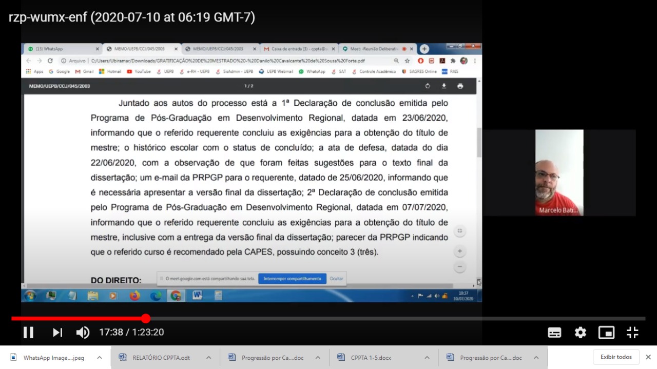 Essa decisão foi baseada na RESOLUÇÃO/UEPB/CONSUNI/0322/2020, que conferiu validade às decisões das instâncias deliberativas colegiadas tomadas em reuniões realizadas por videoconferência, enquanto durar o estado de emergência causado pela pandemia da Covid-19. Dessa forma, inicialmente, foram priorizados os processos que já estavam na Comissão antes da pandemia e não tiveram prosseguimento pelo impeditivo de uma reunião presencial.