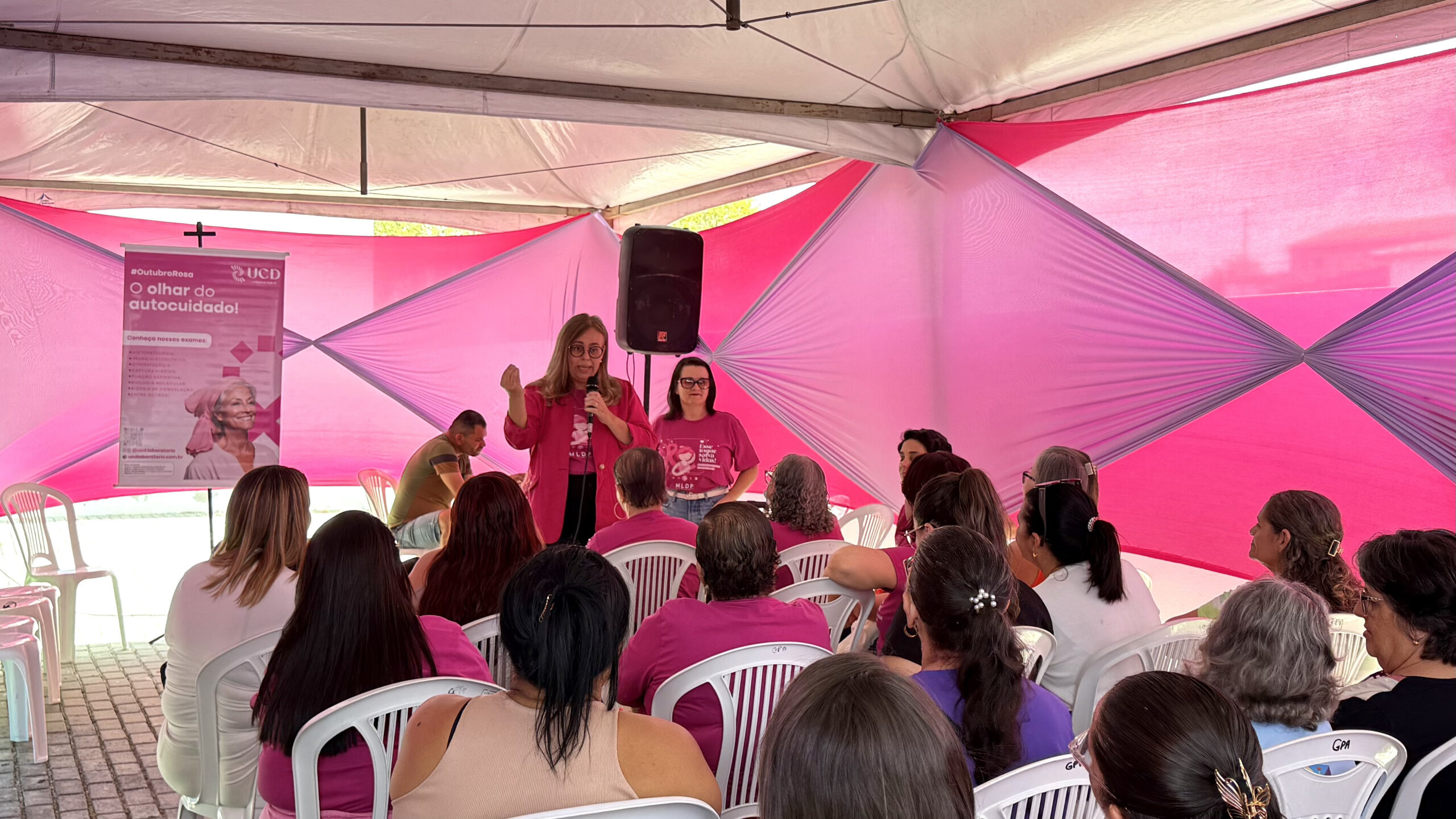 Além da palestra, o projeto distribuiu folders com conteúdo explicativo sobre o assoalho pélvico e a relação com o câncer de mama, reforçando a necessidade de um cuidado integral da saúde da mulher. “Olhar para o assoalho pélvico é também olhar para um autocuidado, pensando na prevenção de disfunções que vão levar a piora ou prejuízo da qualidade de vida e também da funcionalidade da mulher”, pontuou a professora Ana Jéssica.