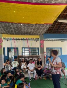 Na manhã da terça-feira (18), a programação contou com uma roda de conversa sobre educação antirracista, com participação de representantes do Neabi, além de apresentações culturais inspiradas nos estudos literários desenvolvidos pelas turmas do 3º ao 6º ano. Os alunos também realizaram apresentação de capoeira, integrando arte, cultura e identidade.