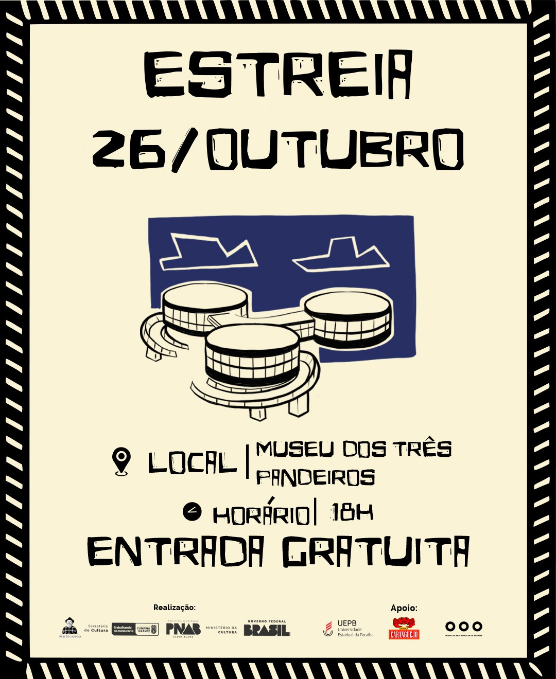 Estreou no sábado (18), no Centro Artístico Cultural (CAC) da Universidade Estadual da Paraíba (UEPB), o espetáculo “SomOs”. Já no domingo (26), às 18h, no Museu de Arte Popular da Paraíba (MAPP) acontecerá a estreia de “O Censor Federal”. Ambos são realizados pelo Núcleo de Formação, Pesquisa e Experimentação Teatral da UEPB e foram contemplados pela Política Nacional Aldir Blanc – Edital Biliu de Campina 2024.