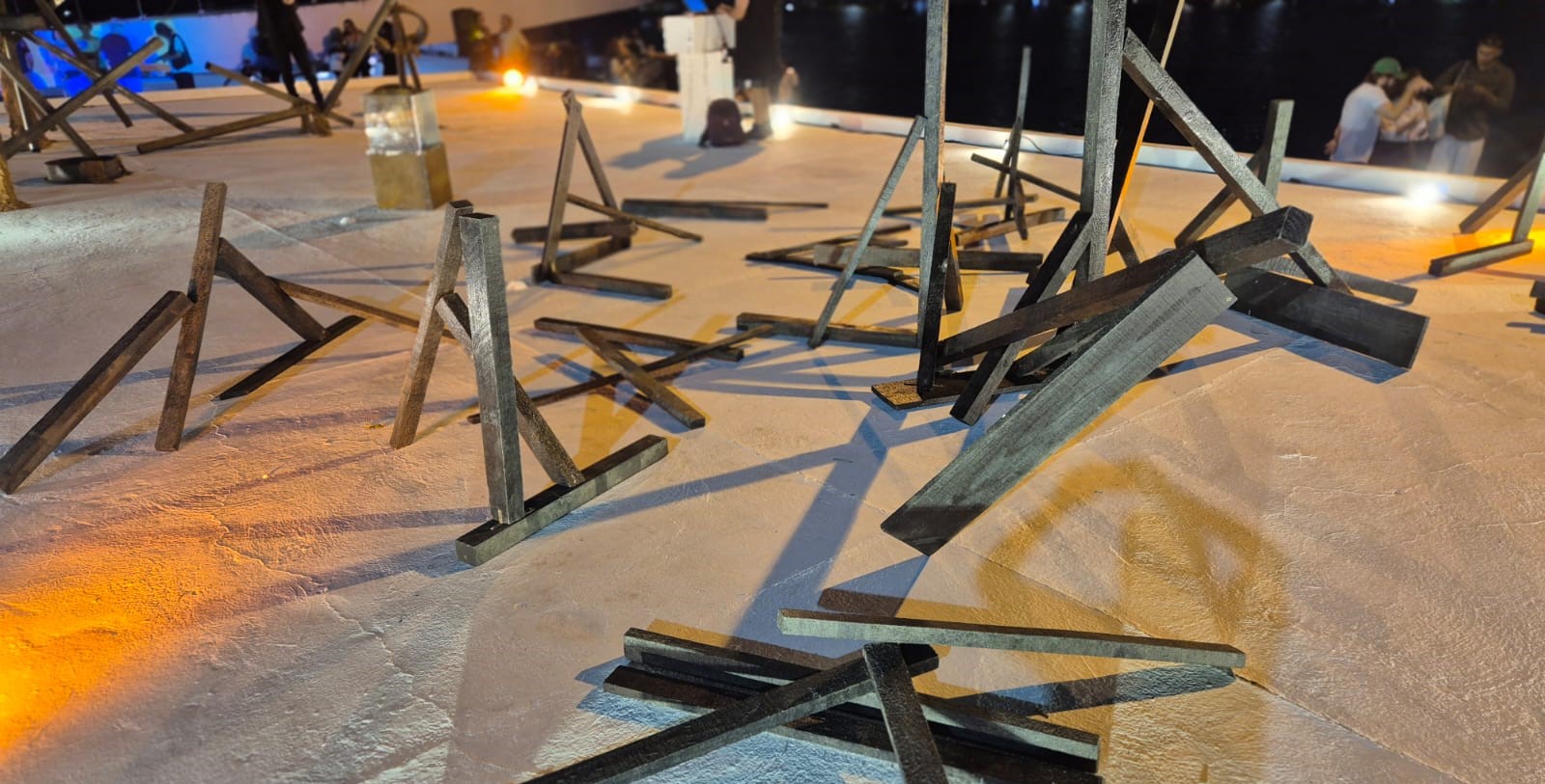 As esculturas de “Profundo-Terra” foram feitas utilizando diversos materiais, a exemplo de metal, barro, madeira e vidro. A montagem é de Sergio Nascimento e Dilson Rocha, respondendo pela curadoria Fábio Tremonte. É a segunda vez que Rebeca mostra seu trabalho no MAPP. “Na primeira exposição, ‘Desenho da Terra’, que foi em 2023, trouxe experimentos com variadas linhas e formas, eram cadernos, papéis, vídeos… Já nessa segunda, eu quis vir para um local externo, com uma montagem de outra maneira, elementos que vêm de outros campos, como da construção civil. São 11 anos trabalhando com arte, que é a área da minha formação, e são dois anos mais voltados ao desenho, ao preto, ao pensamento e ocupação do ambiente. Observando esse caminho, vejo algo como uma ousadia crescente, de tornar tais estruturas mais concretas, inclusive maiores. O público tem interagido, visto a exposição, é uma imersão dela na cidade. É a primeira vez que exponho na rua, de fato, então é um desafio para mim, é uma sensação de estar vulnerável, como se você expandisse seu corpo e deixasse ele ali. Mas acredito muito no olhar das pessoas, principalmente daquelas que não costumam ter contato direto com a arte, eu gosto desse olhar, dessa vivacidade e espontaneidade e espero que as esculturas provoquem uma reflexão, o pensar de um modo diferente o cotidiano”, destacou.