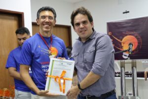Entre os(as) premiados, destaque para a pesquisa “Configuração Aplicada em equipamento digital para análise de concentração de biomassa no processo de fermentação alcoólica”, que teve como inventores os professores João Victor Medeiros Mariz, José Felix de Brito Neto, José Germano Veras Neto, Mário Cesar Ugulino de Araújo, Raison de Oliveira Ramos, Sofacles Figueredo Carneiro Soares e Valber Elias de Almeida. Considerada inovadora, essa pesquisa conquistou o 1º lugar na categoria “Melhor Desenho Industrial”.