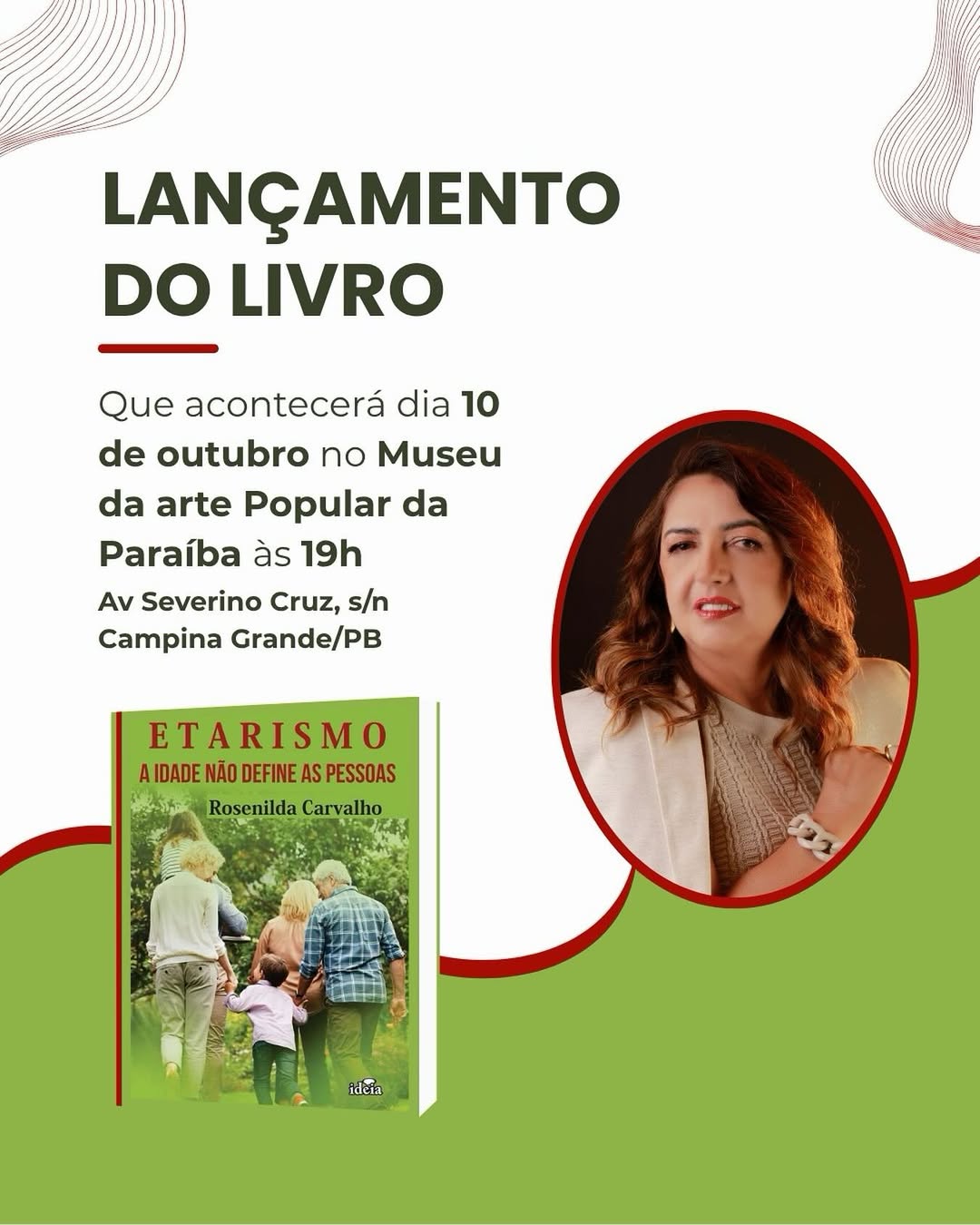 Nesta sexta-feira (10), a partir das 19h, o Museu de Arte Popular da Paraíba (MAPP) da Universidade Estadual da Paraíba (UEPB), em Campina Grande, sedia o lançamento do livro “Etarismo – A idade não define as pessoas”, da consultora empresarial e palestrante Rosenilda Carvalho. A entrada é franca.