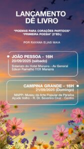 O Museu de Arte Popular da Paraíba (MAPP) da Universidade Estadual da Paraíba (UEPB), em Campina Grande, sedia, neste domingo (21), às 16h, o lançamento dos livros “Primeira Poesia” e “Poemas para corações partidos”, da escritora Rayana Elias Maia.