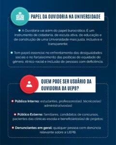 Diferente da ideia de órgão investigativo, a Ouvidoria da UEPB é um espaço institucional de mediação e orientação. De acordo com Iolanda Barbosa, “o setor é um canal de diálogo, não de punição” e seu papel é atuar como ponte entre quem faz a solicitação da demanda e o setor responsável por responder ou resolver o problema. Lá, as demandas recebidas são variadas: reclamações, sugestões, consultas, orientações, elogios e, em casos mais delicados, denúncias, especialmente aquelas relacionadas à condutas inadequadas, como violações de direitos ou possíveis situações de assédio.