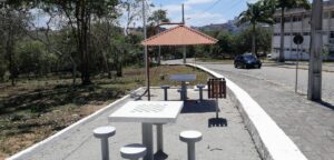 “Muitas dessas áreas de convivência estão sendo construídas com material que era sucata ou ia para o lixo. Não tinha nenhuma utilização. Então, ele juntou esse material, as sobras de cerâmica para fazer aqueles tabuleiros. Todo material não tinha utilização para a obra de infraestrutura, mas ganhou um destino”, contou.
