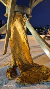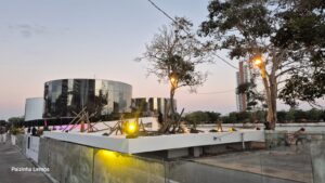 As esculturas de “Profundo-Terra” foram feitas utilizando diversos materiais, a exemplo de metal, barro, madeira e vidro. A montagem é de Sergio Nascimento e Dilson Rocha, respondendo pela curadoria Fábio Tremonte. É a segunda vez que Rebeca mostra seu trabalho no MAPP. “Na primeira exposição, ‘Desenho da Terra’, que foi em 2023, trouxe experimentos com variadas linhas e formas, eram cadernos, papéis, vídeos… Já nessa segunda, eu quis vir para um local externo, com uma montagem de outra maneira, elementos que vêm de outros campos, como da construção civil. São 11 anos trabalhando com arte, que é a área da minha formação, e são dois anos mais voltados ao desenho, ao preto, ao pensamento e ocupação do ambiente. Observando esse caminho, vejo algo como uma ousadia crescente, de tornar tais estruturas mais concretas, inclusive maiores. O público tem interagido, visto a exposição, é uma imersão dela na cidade. É a primeira vez que exponho na rua, de fato, então é um desafio para mim, é uma sensação de estar vulnerável, como se você expandisse seu corpo e deixasse ele ali. Mas acredito muito no olhar das pessoas, principalmente daquelas que não costumam ter contato direto com a arte, eu gosto desse olhar, dessa vivacidade e espontaneidade e espero que as esculturas provoquem uma reflexão, o pensar de um modo diferente o cotidiano”, destacou.