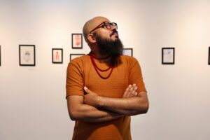 Durante o evento, Zé Dantas externou sua satisfação em expor no MAPP. “É um lugar que eu já tinha como preferido, pois dialoga demais com o meu trabalho e as vivências que carrego e transmito através das obras. O resultado superou minhas expectativas, sobretudo pelo jeito como as peças ficaram dispostas no ambiente”, disse. Ele fez questão de reconhecer, ainda, as pessoas que contribuíram para o projeto dar certo. “Agradeço a cada um que colaborou, pois é um trabalho essencialmente de equipe. Meu obrigado ao curador Alisson Nogueira, gosto muito, aliás, do modo como ele vê as obras, que foge dos moldes convencionais, entendendo totalmente meu processo criativo. Agradeço a Sérgio Nascimento, que é uma referência direta para mim, admiro bastante o trabalho dele, é uma grande influência, sem dúvida. Agradeço a minha família, minhas irmãs, especialmente minha mãe, por compreender a bagunça enorme que faço na casa dela, enquanto trabalho, espalhando tecidos, recortes de todo tipo… Minha avó é alguém que não posso deixar de citar, inclusive a homenageio na obra ‘Principia’. O quadro faz alusão ao folguedo ‘Guerreiro de Alagoas’. Nele, os brincantes dançam com chapéus em formato de igrejas, que são símbolos de poder e autoridade. Como minha avó representava isso para mim, quando eu era criança, utilizei a imagem da casa dela. Além disso, o terreiro da casa dela, aqui em Campina, no Centenário, foi o espaço para as primeiras socializações e brincadeiras na infância”, afirmou.