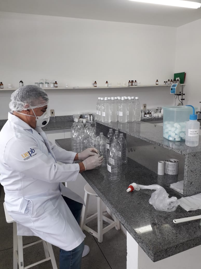 Desde que a Organização Mundial de Saúde (OMS) decretou o novo coronavírus como uma pandemia, o Laboratório, vinculado ao Departamento de Farmácia do Centro de Ciências Biológicas e da Saúde (CCBS), passou a intensificar a produção do álcool em gel a 70% e de sabonete líquido. Atualmente, devido a falta de alguns insumos, o laboratório teve que substituir a formulação e passou, temporariamente, a produzir o álcool glicerinado a 80% e sabonete líquido. A produção e distribuição desses produtos está em ritmo intenso.