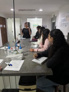 Então, mesmo antes de ela terminar o curso já se aproximou do laboratório e se encantou com o modo como o ecossistema funciona. Ela conta que até sua escrita melhorou muito, “porque gente não faz apenas experimento, a gente lê muito, discute bastante e aprende metodologia científica. Aqui a gente melhora a escrita na prática. Lá na instituição privado onde fiz minha graduação não tinha esse eixo de você saber qual é um artigo bom, como ler, como resumir, como trabalhar e nem muito menos como escrever capítulo do livro. Aprendi tudo aqui. Foi aqui virei cientista”.