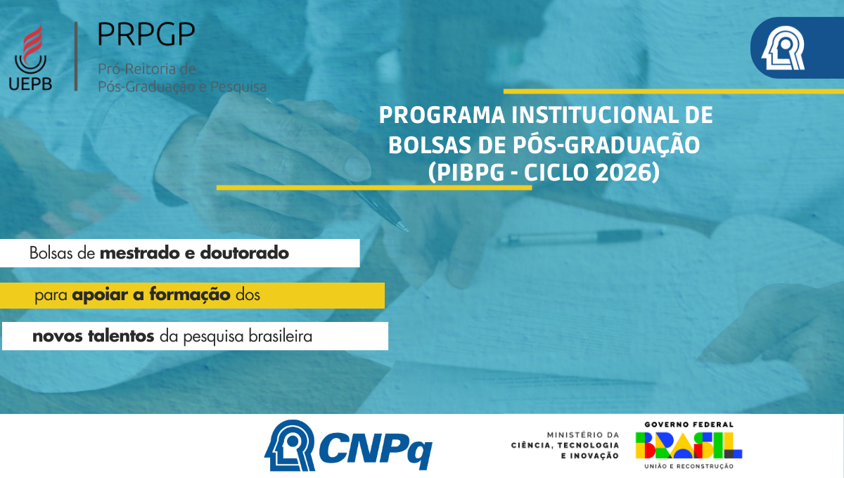 A Universidade Estadual da Paraíba (UEPB) conquistou, nesta sexta-feira (28), 17 bolsas de pós-graduação por meio da Chamada Pública nº 12/2025, do Conselho Nacional de Desenvolvimento Científico e Tecnológico (CNPq). A iniciativa faz parte do Programa Institucional de Bolsas de Pós-graduação (PIBPG) Ciclo 2026, que visa fortalecer a pesquisa e a formação acadêmica no Brasil.